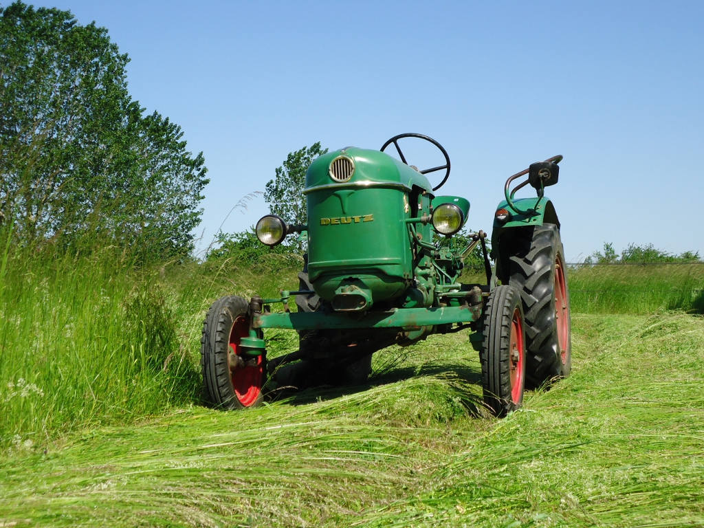 Les années passant, il décida d'ensemencer sa parcelle en herbe et d'acheter une tondeuse auto porté et de vendre son tracteur.