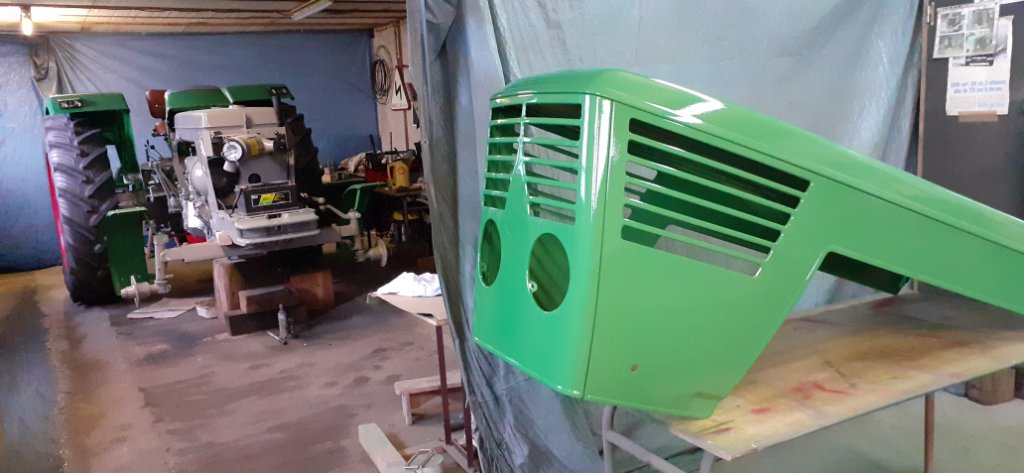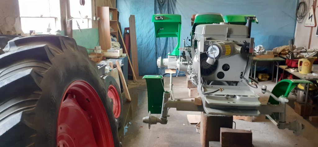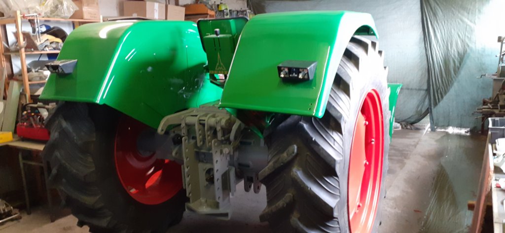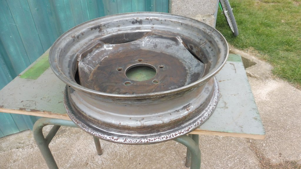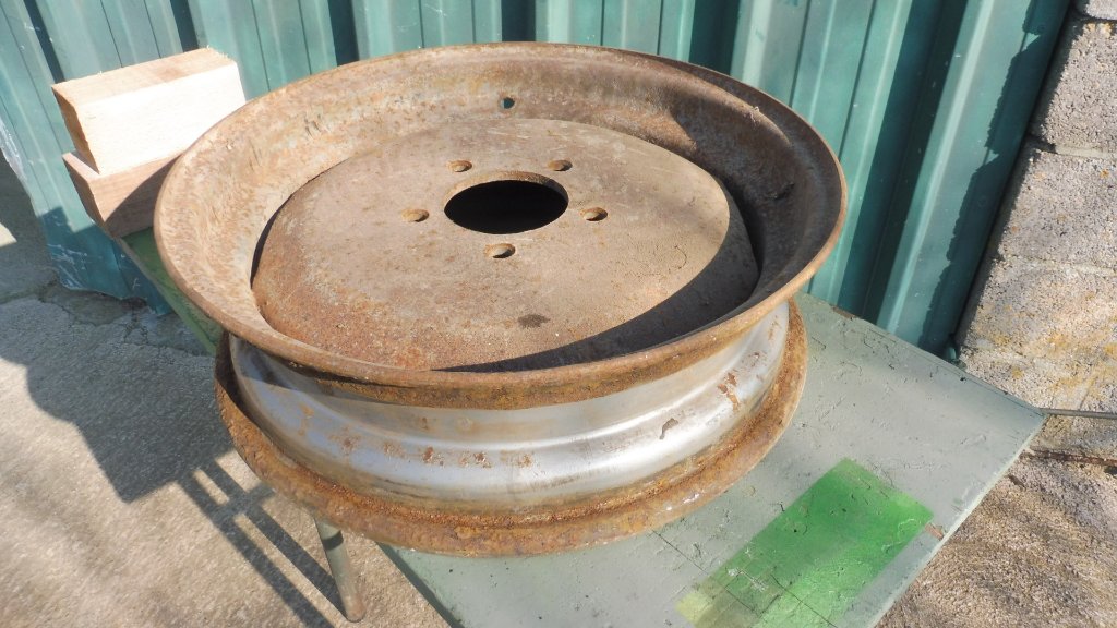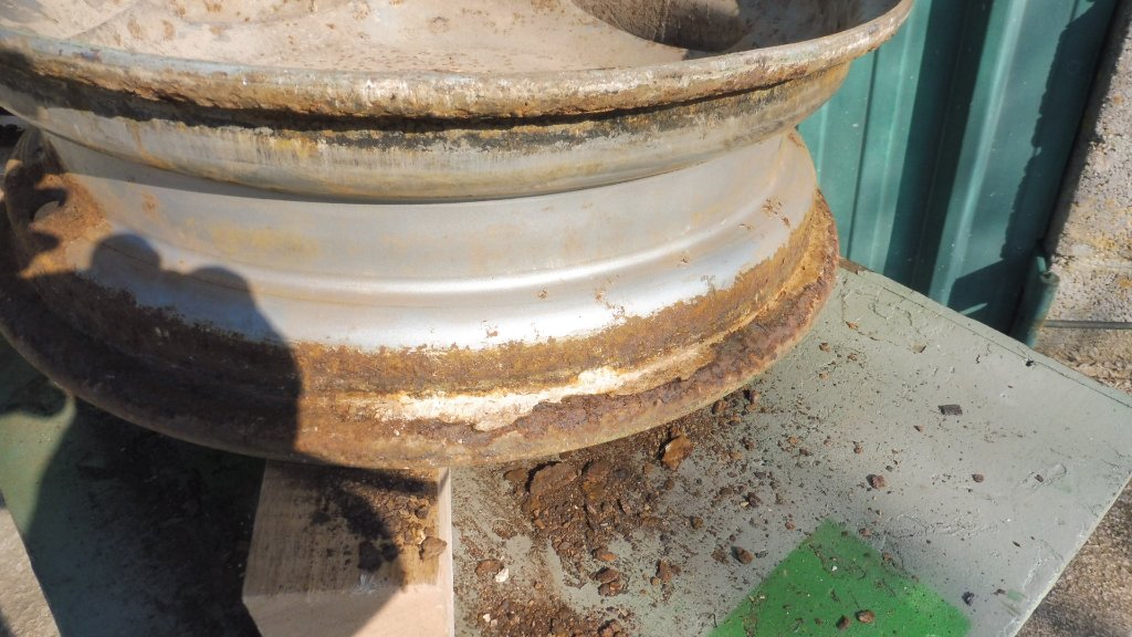 La jante est bien arrivée. Un premier nettoyage avant sablage et elle sera bientôt toute propre. On pourra bientôt reposer le tracteur sur ses 4 roues !