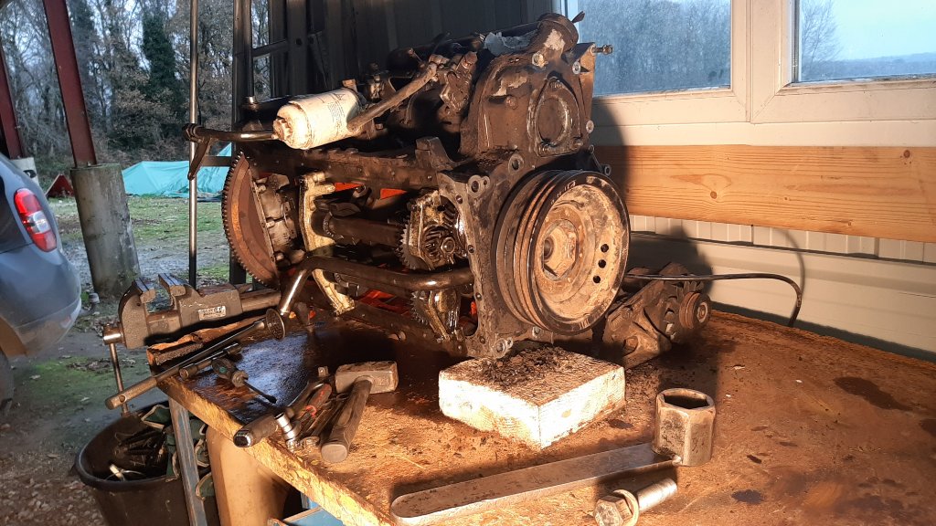 Ensuite j'ai déposé le moteur, je l'ai posé sur une bonne table
