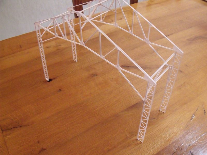 Voila mon travail de se matin, assemblage des 2 premieres ferme, pas facile faut pas trembler, et la je suis en panne de matiere, mon fournisseur n'avais pas tout en stock, suis obligé d'attendre 2 semaines pour continuer, vais ataquer la table pour poser tout ça