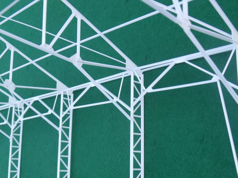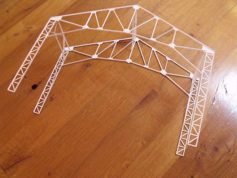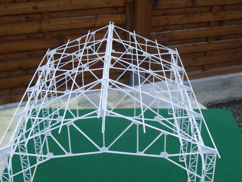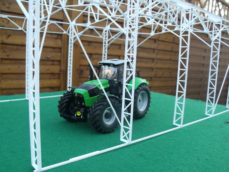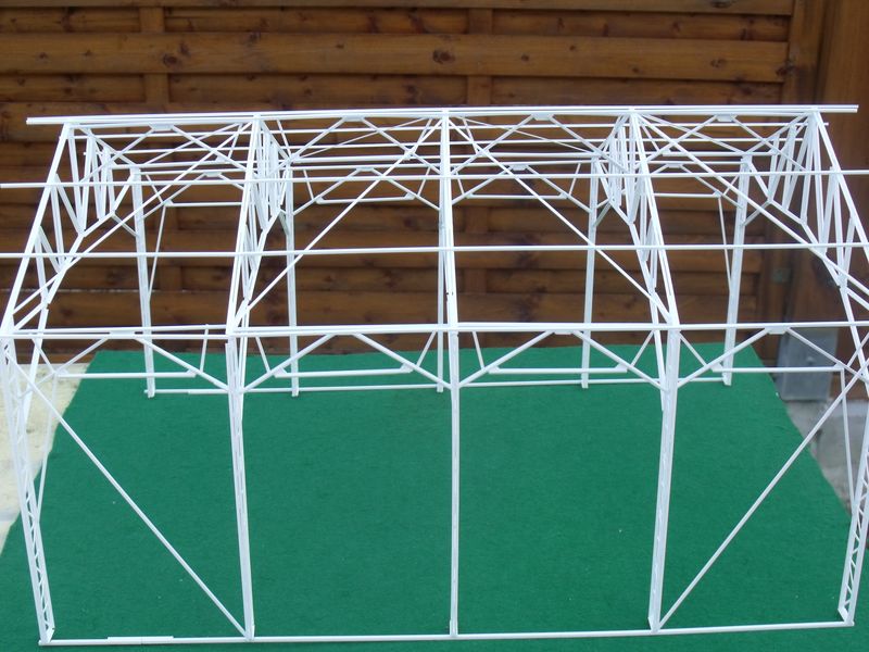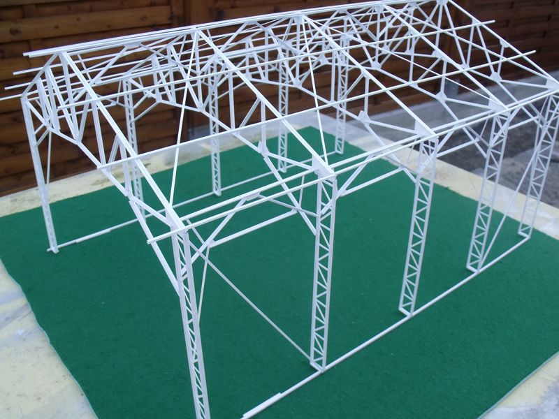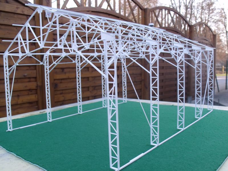 Aller hop, le we à finir mon hangar,alors au total, 628 piéces, plus de 1000 points de colle,et 80 heures de boulot, reste le peinture, noir mat patiné, et pose des toles.