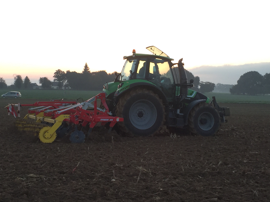 Déchaumage avec un synckro en 6 mètres de chez pottinger