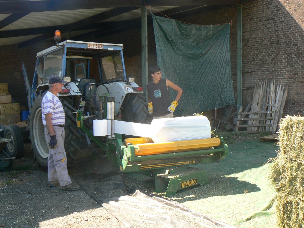 A propos de photos, ca me fait penser, si quelqu'un n'a jamais vu une enrubanneuse à petits ballots (ce qui était mon cas jusqu'il y a quelques années avant qu'on ne s'y attarde, je savais même pas que ca existait). C'est une photo lorsqu'on en avait fait l'expérience (peu concluante au final) étant attirés par le prix de vente important de ce type de fourrage.
