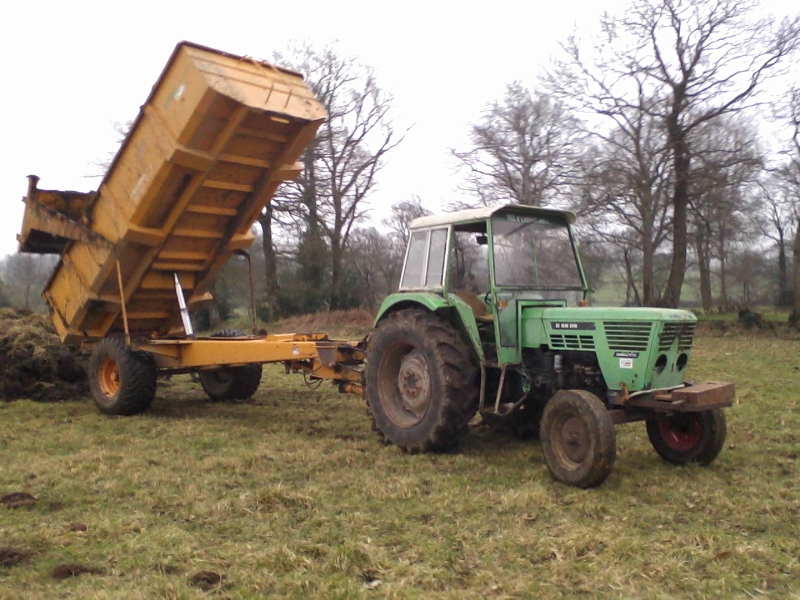 Vidange des fumières durant les vacances :) avec l'agrotron sur le chargeur et le 6806 sur la 10T