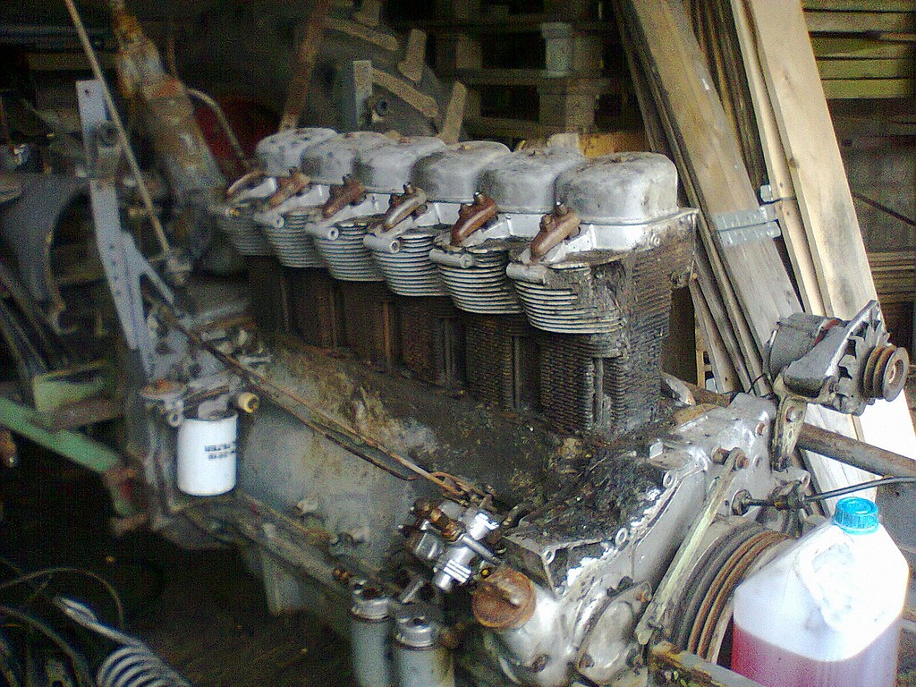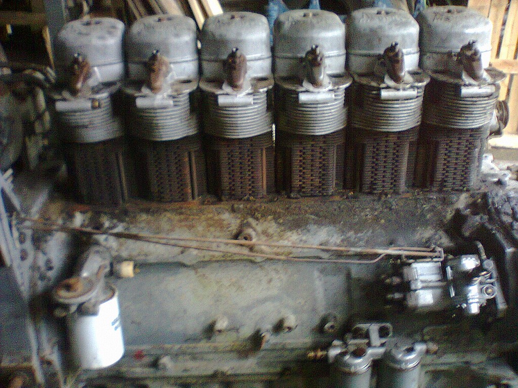 ce n'est pas un alambic, c'est le serpentin de refroidissement de l'huile moteur qui se trouve normalement derrière les cylindres sous le carter dans le prolongement de la turbine. Il a été déposé pour pouvoir déculasser tranquille je suppose...