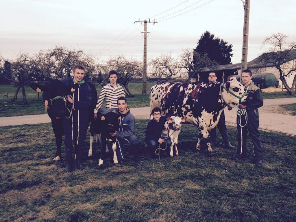 Nous emmenons 2 vaches 1 veau Prim'Holstein et 2 vaches 1 veau de race Normande