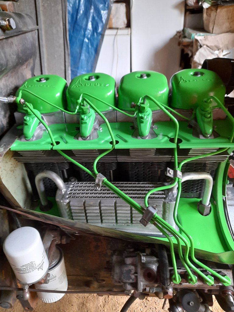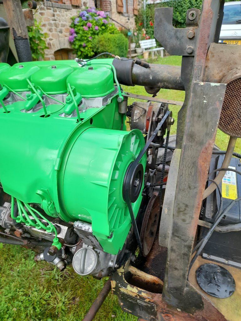 il tourne nickel ici il manque le déflecteur en plastique que je dois refabriquer car introuvable de plus l'ancien propriétaire a eu la batterie qui a exploser et la tablier bouffer par la rouille a ete refixer mais bien plus bas donc le collecteur n'est plus aligner et s'emboite plus dans le tablier je pense chercher un autres tablier car je ne sait pas souder pour le refaire encore une recherche a cause perdu :pleur4: et je cherche toujour les caoutchouc des durite de gazole si quelqu'un en a ou sait ou en trouver dite moi merci donc a suivre bien sur il reste beaucoup a faire mais je veux pas faire une bete de concours mais qu'il soit fiable :super: