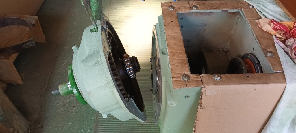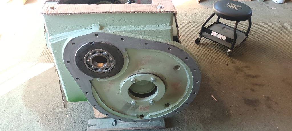 Début du remontage, pose de le grande couronne du couple conique et réglage du jeu des roulements coniques. Il faudra ensuite poser la boite de vitesses pour régler la position latérale de la couronne.