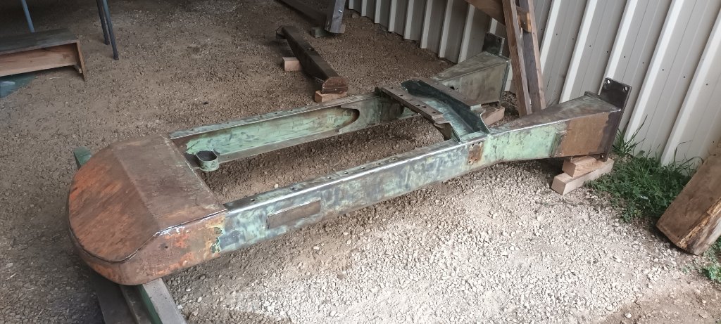 Opération nettoyage et brossage du châssis du DK60 en vue de le sabler. Le sabot de protection a été découpé afin de faciliter le nettoyage. La rouille ayant commencé à faire du mille-feuilles entre les 2 tôles. Il sera resouder après le sablage. Par-ci par-là des vis cassées sont à extraire...