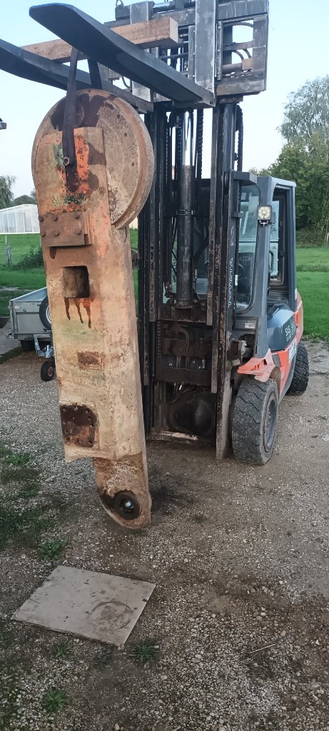 Au niveau des trains de chenilles, les galets de roulement sont déposés. Le bon point, ça a l'air plutot en très bon état de ce côté là. A priori, pas de jeu dans les axes. On voudrait à présent sortir la roue avant avec le système de réglage de la tension mais pour l'instant ça résiste. Le dégrippant va travailler pour nous en attendant la prochaine tentative.......